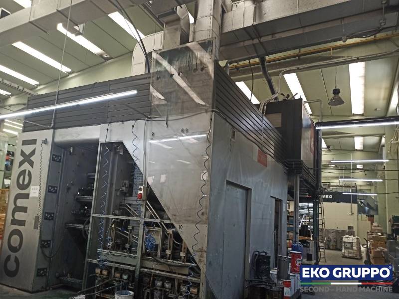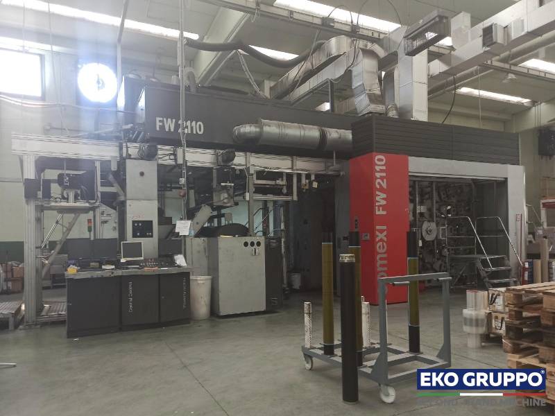 This used COMEXI FW GL CNC 2110 Flexographic Printing Press allow high and stable print quality with a range up to 400 m/min and a film width till of 1.270 mm.