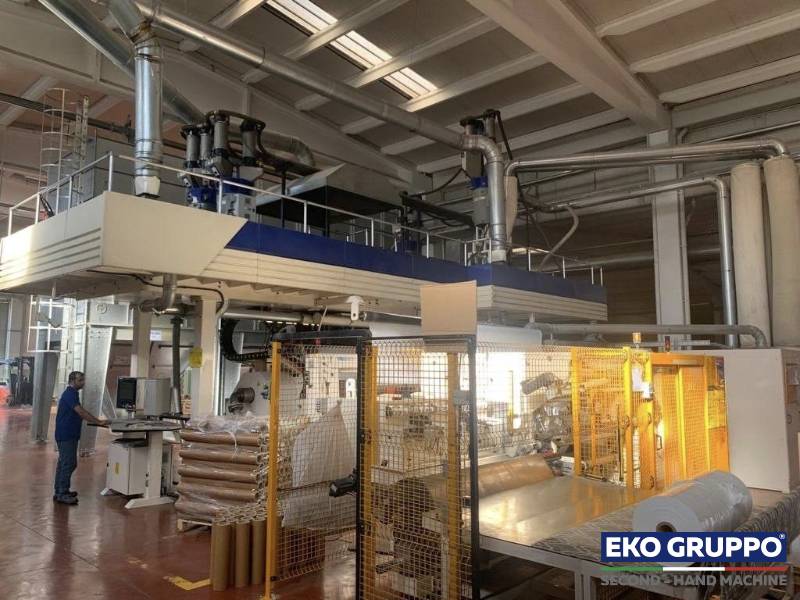 The 5 Layers ALLrollEX 1500 Colines Cast Stretch Film Machine allow to produce Stretch wrap film with high quality winding. This second-hand Cast Line gives to customers efficient Stretch film production capability with a film width of 1,5 mt and an output rate of up to 1.400 Kg/h.