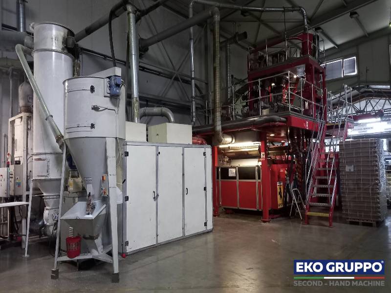 The Torninova Compact 3 layers 1000 Stretch Film Machine allow to produce Stretch wrap film with high quality winding. This second-hand Cast Line gives to customers efficient Stretch film production capability with a film width of 1 mt and an output rate of up to 800 Kg/h.