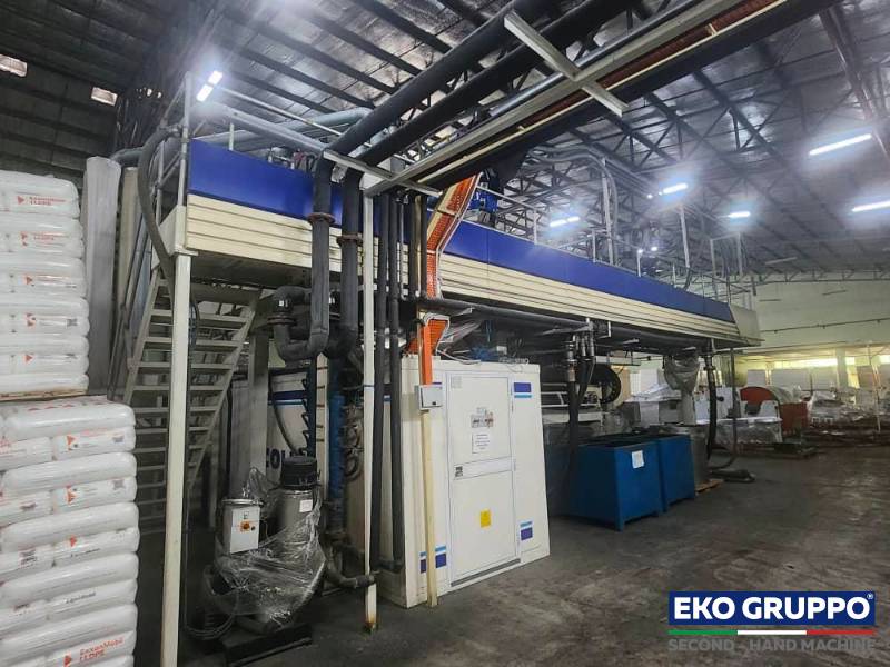 The 5 Layers ALLrollEX 1500 Colines Cast Stretch Film Machine allow to produce Stretch wrap film with high quality winding. This second-hand Cast Line gives to customers efficient Stretch film production capability with a film width of 1,5 mt and an output rate of up to 1.300 Kg/h.