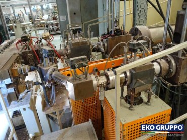 Depending on the application, there are a number of variations including the number and rotation of the screws, the screw and cylinder geometry and the structure. The die itself can be fed by several extruders extruding different thermoplastics, resulting in layered or concentric co-extrudates. The extrudate is then cooled via chill rolls and transported to slitting and winding stations.