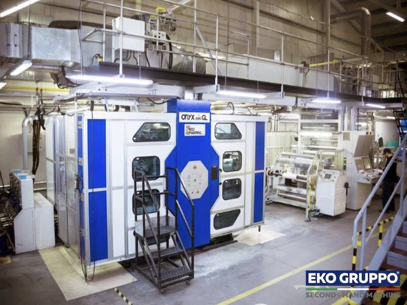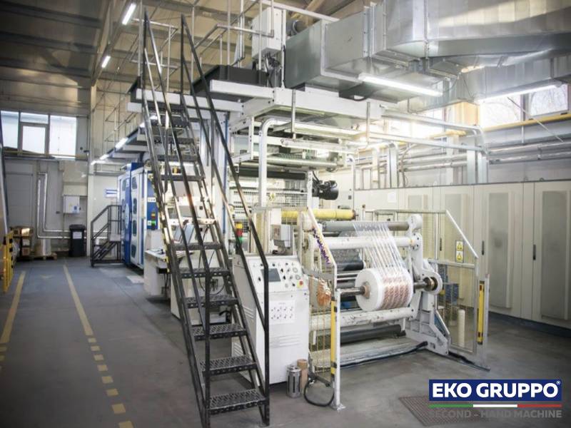 The used Uteco Onyx 876GL CI Flexo Press 8 colors allow high and stable print quality with a range up to 400 m/min and a film width till of 1.200 mm.